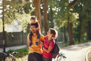 Exploring your town or a local cycling path is a great way to get some exercise and see new sights. Cycling with the whole family can also be an excellent confidence booster for kids learning to ride their bikes. Don't forget your helmets!